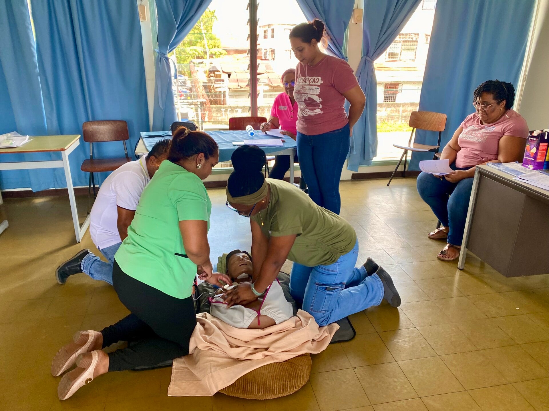 Het was een interactieve training met een groep van 20 gemotiveerde deelnemers van o.a. het Diakonessenhuis, ‘s Lands Hospitaal, Sint Vincentius Ziekenhuis, Regionaal Ziekenhuis Wanica, Huisartsenpost, Militair Hospitaal en het Luchthavenbedrijf Zanderij. De training was deels plenair en deels in 3 groepjes en werd verzorgd door de SNF instructeurs dokter Jimmy Kromosoeto, Wilfred Oudenaarden, Mirjam van Asperen, Charonne Soetosenojo en Jaco van der Worp.